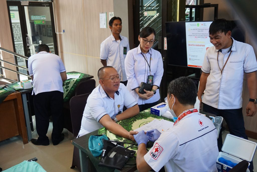 Kegiatan berlangsung lancar dan penuh semangat. Peserta tampak antusias mengikuti proses donor darah sebagai wujud kepedulian terhadap sesama, terutama bagi mereka yang membutuhkan transfusi darah untuk keperluan medis.